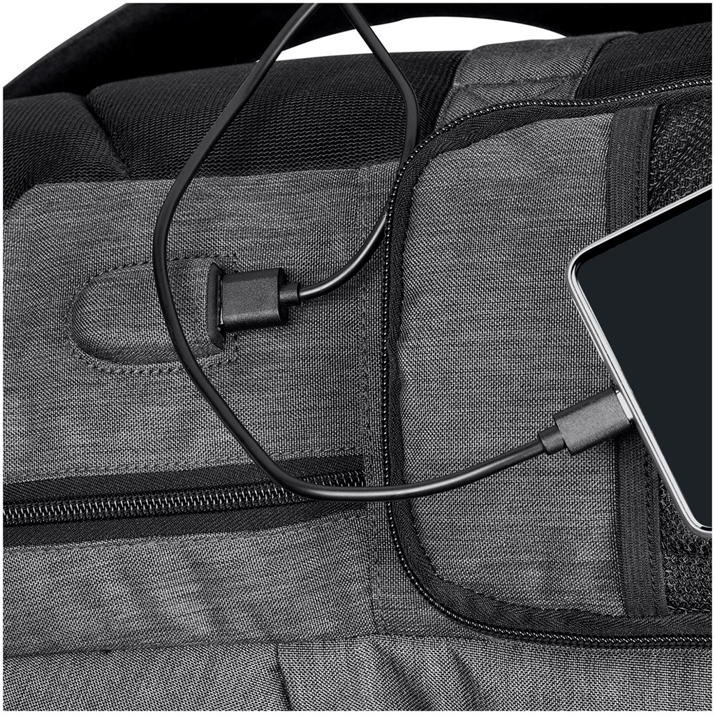 Constructed from a superior, modern melange fabric, this fully loaded laptop backpack is packed with features. The RFID pocket helps protects you from fraud while the external USB charging port provides safe and easy access to charge your phone.